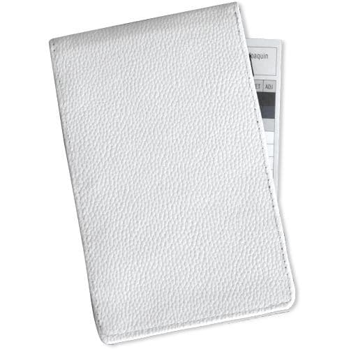 1withGolf Scorecard Holder White(Incl Logo/Name) Store Your Golf Scorecard safe and in Style made with high quality, soft feel, durable Pu Leather, the Scorecard Holder Protects Your Card Against All Weather and Fits Easily in Your Back Pocket; Easy Storage: Golf Scorecard holder is big enough to fit your scorecard, also small enough to fit inside your golf bag. Multiple elastic bands to hold your scorecards, yard books or some notes/reminders to improve your game.
