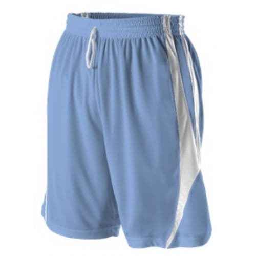 Alleson Adult Reversible Basketball Short 100% Extreme mock mesh Cationic Colorfast Polyester with moisture management fibers. Two color, double ply, fully reversible jersey and short. Short has 2" reversible elastic waistband and inside drawcord. Adult inseams: S(8"), M(9"), XL-3XL(10"). Youth inseam: 7".