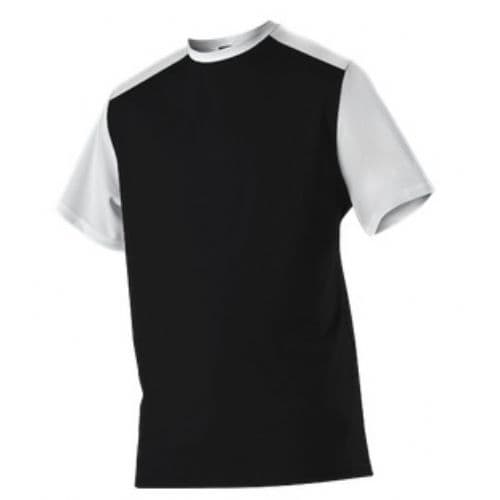 Alleson Crew Neck Baseball Jersey 100% Cationic Diamond Mock Mesh Cationic Polyester. Solid color diamond body with contrast color modified raglan yoke and set-in sleeves. Contrast color self-material, set-in collar for comfort and appearance. Straight hemmed bottom and sleeves.