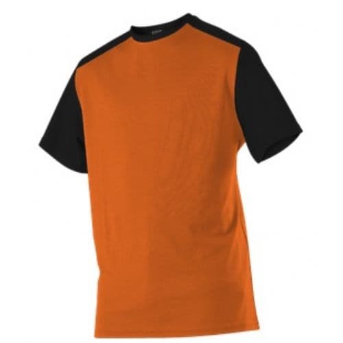 Alleson Crew Neck Baseball Jersey 100% Cationic Diamond Mock Mesh Cationic Polyester. Solid color diamond body with contrast color modified raglan yoke and set-in sleeves. Contrast color self-material, set-in collar for comfort and appearance. Straight hemmed bottom and sleeves.