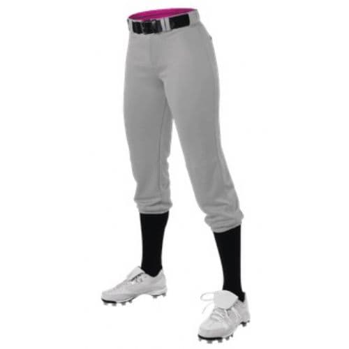 Alleson Women's Belted Premium Fastpitch Pant 100% Stretch Knit Dura-Soft Polyester with moisture management properties. Low rise Women's cut with mid-calf length. Double knee construction. Zipper fly two snap closure. Two double welt set-in ergonomically designed slanted back pockets. Girl's inseams: XS(22.5") S(23"), M(23.5"), L(24"), XL(24.5"), XXL(25").