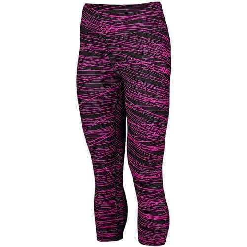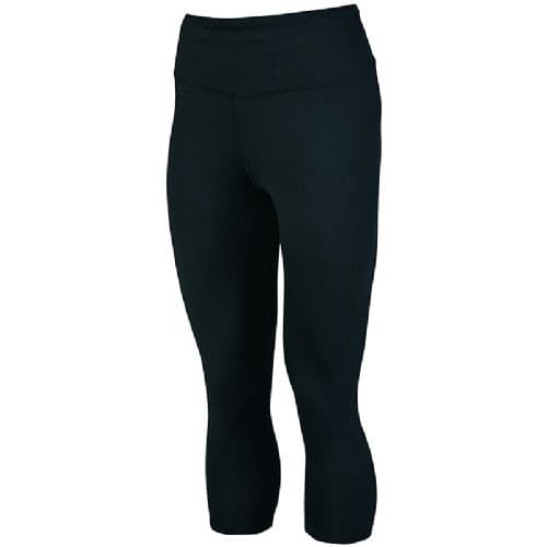 Augusta Hyperform Compression Capri Heavyweight 88% polyester/12% spandex knit. Wicks moisture. Ladies' fit. Pad print label. Low rise, wide flat waistband for secure fit and comfort. Hidden possession pocket in waistband. Flatlock stitching provides comfort and resist chafing.
