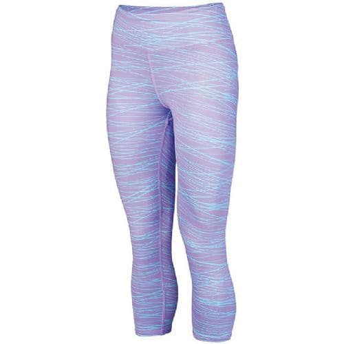 Augusta Hyperform Compression Capri Heavyweight 88% polyester/12% spandex knit. Wicks moisture. Ladies' fit. Pad print label. Low rise, wide flat waistband for secure fit and comfort. Hidden possession pocket in waistband. Flatlock stitching provides comfort and resist chafing.