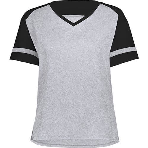 Cheer on your team or represent your brand in the Ladies Fanatic 2.0 Tee from Augusta Sportswear. This ladies' fit tee combines style and comfort with features like a v-neck collar, set-in sleeves with angled shoulder seam, and a dropped tail hem.