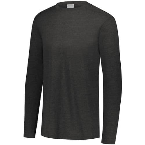 Augusta Youth Tri-Blend Long Sleeve Crew The extra soft Youth Tri-Blend Long Sleeve Crew sports a trendy fit and stylish colors. A perfect balance of cotton, rayon, and polyester along with a brushed peach surface make this Long Sleeve T-shirt an easy favorite. It’s the new basic tee – for promotions, fanwear, administration, and corporate wear. 3.8 ounce, 50% polyester/38% cotton/12% rayon tri-blend knit. Fits loose to body. Tear away label. Crew neck. Set-in sleeves with rolled forward shoulder seam.