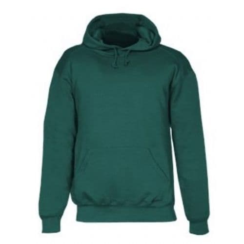Two-ply hood with drawcord. Spandex reinforced rib knit cuffs and waistband. Pouch front pocket with headset opening. Embroidered Badger logo on left sleeve cuff.