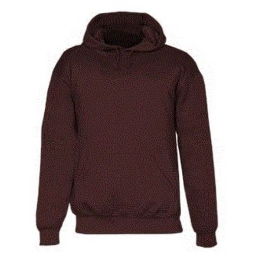 Two-ply hood with drawcord. Spandex reinforced rib knit cuffs and waistband. Pouch front pocket with headset opening. Embroidered Badger logo on left sleeve cuff.