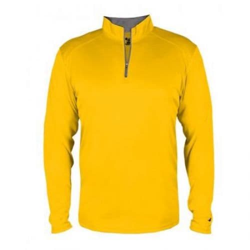 100% Polyester moisture management/antimicrobial fabric. Self-fabric collar with 7" locking zipper - Contrast zipper & inner collar. Badger sport paneled shoulder for maximum movement with coverstitch. Badger heat seal logo on left sleeve.