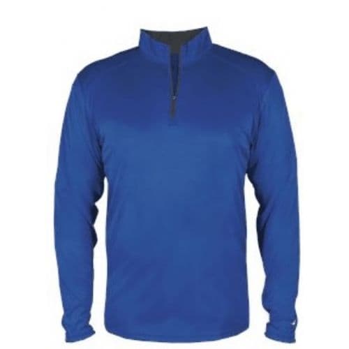 100% Polyester moisture management/antimicrobial fabric. Self-fabric collar with 7" locking zipper - Contrast zipper & inner collar. Badger sport paneled shoulder for maximum movement with coverstitch. Badger heat seal logo on left sleeve.