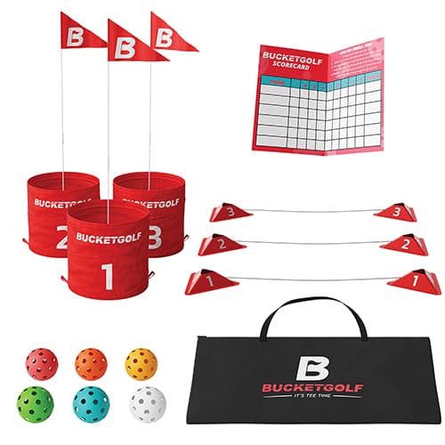 The BucketGolf starter set is great option for those looking to play in smaller spaces. It's a portable par 3 golf game that combines the excitement of golf with the ease of backyard games for all levels.