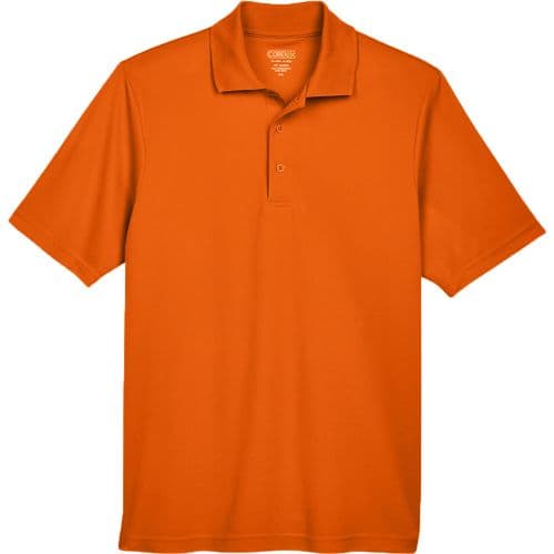 Core 365 Men's Origin Performance Pique Polo 100% Polyester pique with moisture-wicking, anti-microbial and UV protection performance. Matching flat knit collar. Heat-sealed label.