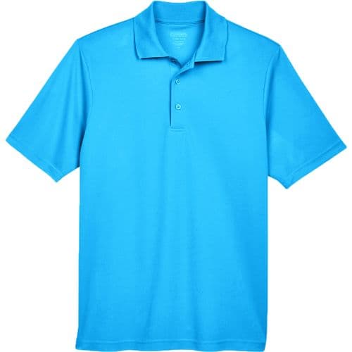 Core 365 Men's Origin Performance Pique Polo 100% Polyester pique with moisture-wicking, anti-microbial and UV protection performance. Matching flat knit collar. Heat-sealed label.