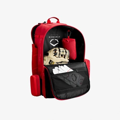 Stay prepared for practices and game days with the EvoShield Takeover Backpack featuring all the space needed to store all your equipment so you never miss a beat when its time to make a play. The large main compartment can stash a batting helmet and fielding glove while the ventilated shoe pocket keeps your spikes fresh. Checking in at 21x11.5x24, the Takeover Backpack holds your bats, sunglasses and accessories to make sure youre always locked in.