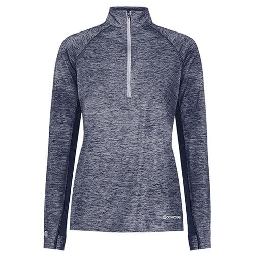 Perfect for sunny days, the Ladies Electrify Coolcore® 1/2 Zip Pullover  from Holloway features Coolcore® technology that is engineered to  distribute moisture quickly throughout the garment. Made from a  heathered wicking knit that protects against the sun (50+ UPF on body,  25+ on mesh inserts), this women's pullover will keep you cool and dry  on the hottest of days.