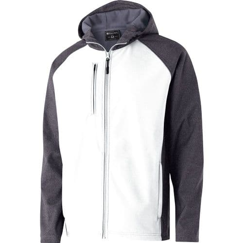 Athletes will be able to stay toasty during every chilly training session or warm-up run while wearing this Holloway® Adults' Raider Soft-Shell Jacket. Wearers will enjoy the comfortable feel afforded by the polyester and spandex construction and brushed-jersey fabric, which combined with the adjustable hood, block out wind, rain and inclement weather. Players can carry their personal items with ease while wearing this jacket, which boasts dual front, zippered pockets, a zippered pocket on the chest and dual interior pockets.