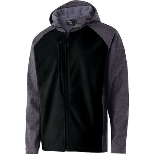 Athletes will be able to stay toasty during every chilly training session or warm-up run while wearing this Holloway® Adults' Raider Soft-Shell Jacket. Wearers will enjoy the comfortable feel afforded by the polyester and spandex construction and brushed-jersey fabric, which combined with the adjustable hood, block out wind, rain and inclement weather. Players can carry their personal items with ease while wearing this jacket, which boasts dual front, zippered pockets, a zippered pocket on the chest and dual interior pockets.