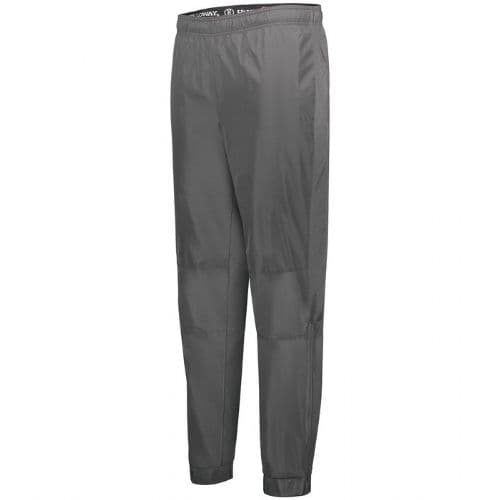 Holloway Men's SeriesX Pant Micron™ polyester is a lightweight, wind/water-resistant fabric. 100% polyester micromesh lining. Embossed inserts for subtle textured pattern. Woven label. Exposed brushed elastic waistband with inside drawcord. Side seam pockets. Back welt pocket. Tapered leg. Articulated seaming at the knees. Covered elastic cuff at leg opening. Zipper on outside lower leg.