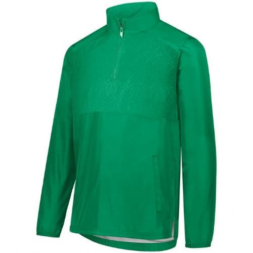 Holloway Men's SeriesX Pullover Micron™ polyester is a lightweight, wind/water-resistant fabric. Embossed inserts for subtle textured pattern. Micromesh lined nylon body. Taffeta lined sleeves. Woven label. Quarter zip pullover style with zipper garage. Set-in sleeves. Front pockets. Spandex bound cuffs. Side seam zipper for easy on/off. Dropped tail with side vents.