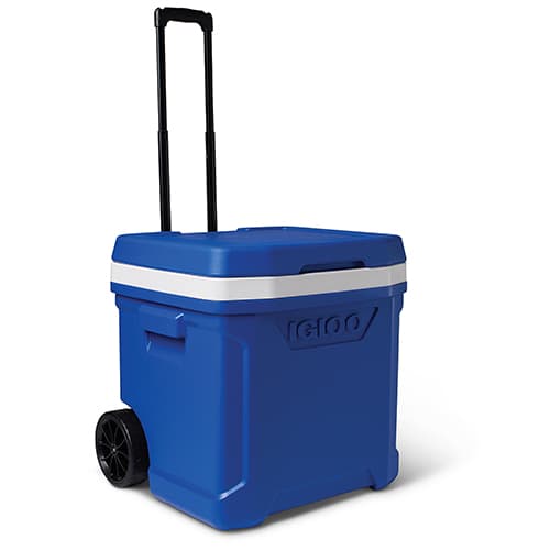 Keep your drinks cool while hauling them around in the Igloo Profile Roller 60 qt Cooler. With the spacious interior and the wheels with the locking, telescoping handle make it easy for you to pack, roll and store your favorite drinks and food anywhere you need to be. The Cool Riser Technology means that the design has been thoughtfully crafted to improve cooling, so don't eat lukewarm food again!