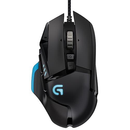 G502 HERO features an advanced optical sensor for maximum tracking accuracy, customizable RGB lighting, custom game profiles, from 200 up to 16,000 DPI, and repositionable weights.