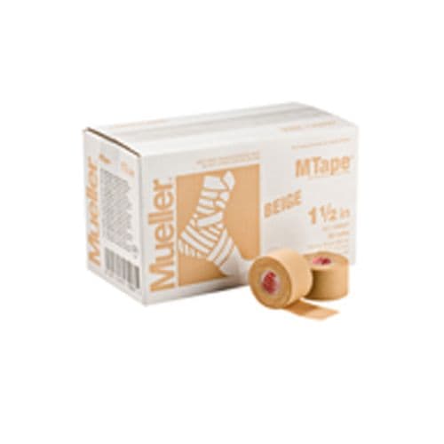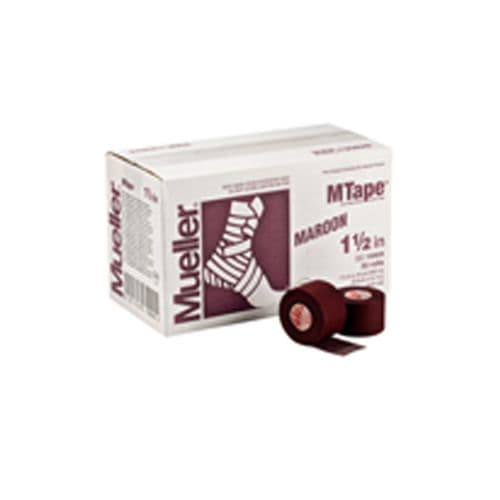 Mueller® MTape is a top-quality athletic tape ideal for all sports medicine applications. Easy to tear and unwinds to the core for fast and effective taping. Provides firm support and compression. Rolls are made of hospital-grade, 100% cotton backcloth with a zinc oxide based adhesive. High tensile strength, excellent tackiness and conformability. Colorfast dyes will not bleed. 1.5" X 10YD, 32 rolls.