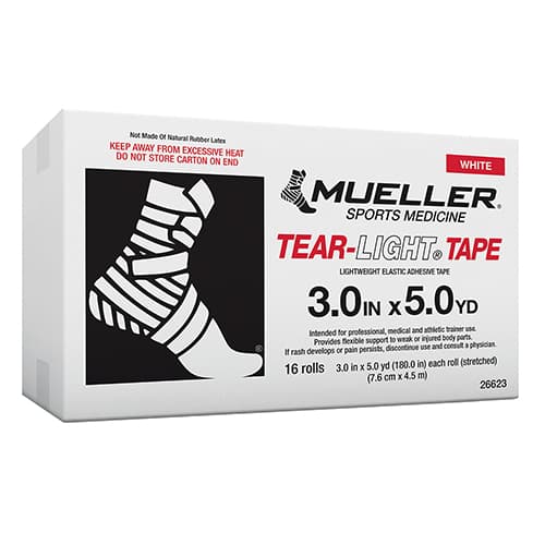 Mueller® Tear-Light® Tape features a superior adhesive with excellent conformability. Easy-to-tear elastic adhesive is ideal for securing lateral knee braces, cold packs, or using as a compression wrap.