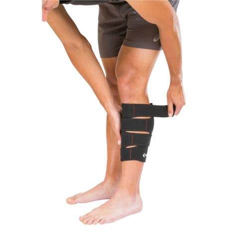 MULTI-DIRECTIONAL CALF WRAP The Mueller Multi-Directional Calf Wrap helps provide uniform support to weak or injured legs. Features the Mueller myofascial pad for gentle sustained pressure, pad can be removed or repositioned for additional relief options. Helps provide support to lower leg for conditions such as shin splints or calf muscle strains.
