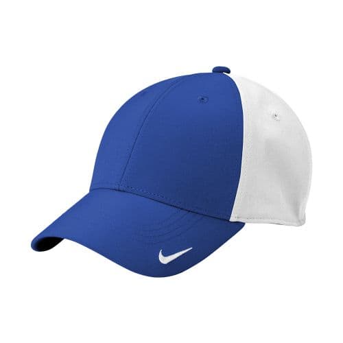 Nike Dri-FIT Legacy Cap With a smooth front panel and stretch for comfort, this moisture-wicking cap continues a legacy of performance. This popular cap has been modernized from its original 1991 design with lightly structured front panels and unstructured mid and back panels. Features a mid-profile and a hook and loop closure. The contrast Swoosh logo is embroidered on the bill. Made of 5.6-ounce, 90/10 polyester/spandex.