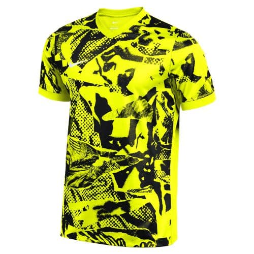 Nike Men's Dri-FIT Precision VII Short Sleeve Jersey Stand out in the Nike Precision VII Jersey. Dri-FIT technology pairs with breathable mesh in a slim, streamlined fit to help keep you dry and cool. Allowver print is inspired by clashing images of a classic sculpture of the Nike Goddess. 100% polyester.