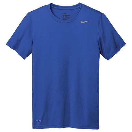 Nike Men's Team Legend Short Sleeve Tee This is the stuff of which legends are made. The Team rLegend Tee is built from sustainable recycled polyester and powered by Dri-FIT technology—so you’ll get peak performance with a lower environmental impact. Neck tape for durability. Heat-transfer label for tag-free comfort. A contrast heat transfer Swoosh logo on left chest. Made of 4-ounce, 100% recycled polyester jersey.