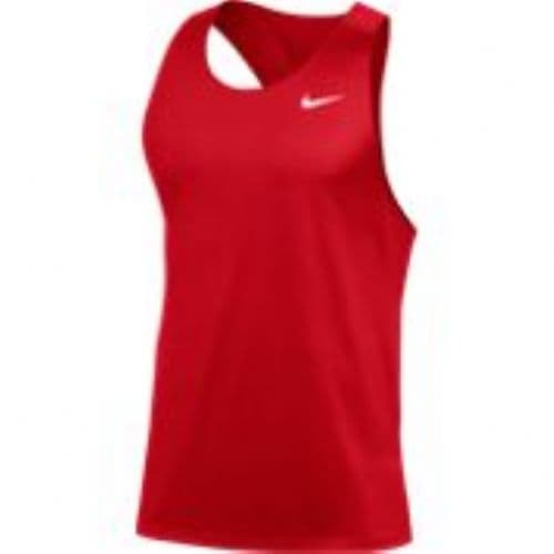 Nike Men's Team Running Singlet Nike Dri-FIT technology moves sweat away from your skin for quicker evaporation, helping you stay dry and comfortable. Knit mesh adds breathability to keep you cool. A racerback design lets you move freely. The dropped back hem extends your coverage. 100% POLYESTER.