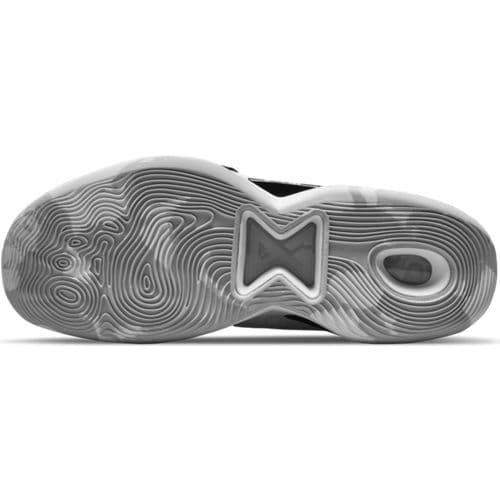 The outsole uses a multidirectional tread pattern to provide stop-and-go traction and control on the court.