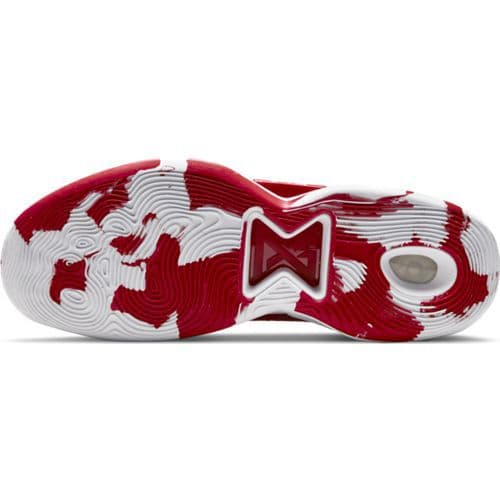 The outsole uses a multidirectional tread pattern to provide stop-and-go traction and control on the court.