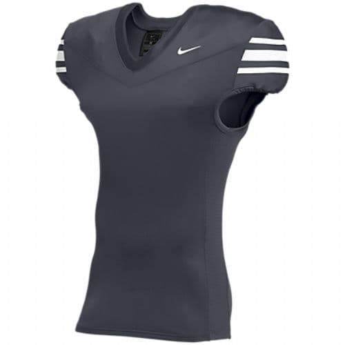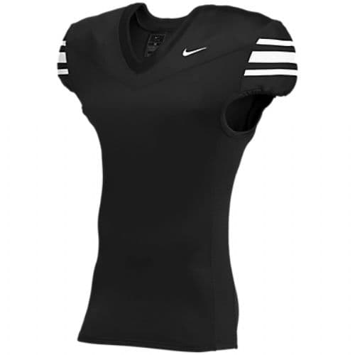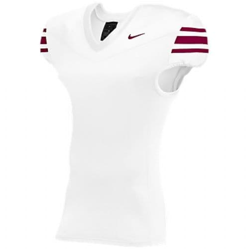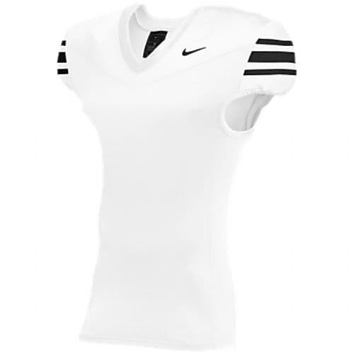 Nike Vapor Pro Football Jersey 4-way stretch knit body fabric and 2-way stretch mesh insets for performance and durability. Pro waist elasticized hemline to keep the jersey tight and tucked and minimize grab points. Lockdown fit designed to keep padding in place and fit close to the body. Screen print sleeve stripe.