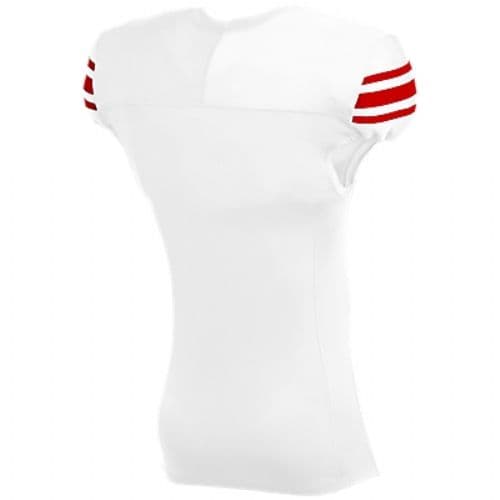 Nike Vapor Pro Football Jersey 4-way stretch knit body fabric and 2-way stretch mesh insets for performance and durability. Pro waist elasticized hemline to keep the jersey tight and tucked and minimize grab points. Lockdown fit designed to keep padding in place and fit close to the body. Screen print sleeve stripe.