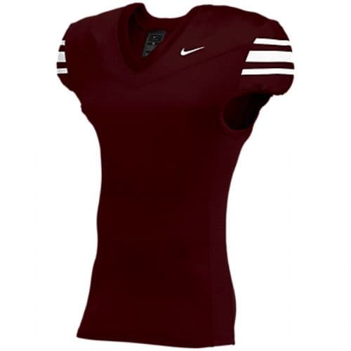 Nike Vapor Pro Football Jersey 4-way stretch knit body fabric and 2-way stretch mesh insets for performance and durability. Pro waist elasticized hemline to keep the jersey tight and tucked and minimize grab points. Lockdown fit designed to keep padding in place and fit close to the body. Screen print sleeve stripe.