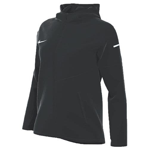 Nike Women's Team Miler Jacket An essential piece to your running game gets an update with the Nike Repel Miler Jacket. Recycled, woven fabric is built to take on wet weather with a water-repellent design and hooded coverage. Full front zipper allows fast, easy access. Zippered pockets help keep your gear secure. The jacket can be packed into the sides pockets for easy, on-the-go carrying. 100% Polyester.