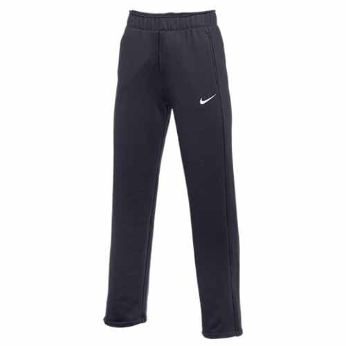 Nike Women's Therma-FIT All Time Pant The Nike Therma-FIT All Time Pants have extra-warm fleece in a relaxed fit to keep you warm and comfortable. They're super stretchy and have sweat-wicking technology that helps you stay dry before, during or after your workout. An elastic waistband and drawcord allows you to adjust at the waist for a custom fit. Pockets provide quick storage for keys, phone and cold hands. Standard fit for a relaxed, easy feel. Body: 91% polyester/9% spandex. Pocket bags: 100% polyester.