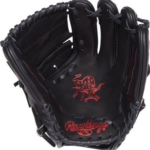 Rawlings 2025 Heart of the Hide Series 11.75-Inch Baseball Glove RHT Feel fluid and in control with this luxurious 11.75-inch Heart of the Hide black hypershell infield glove. The all-black look becomes elevated with the black hypershell design, creating a lightweight feel and a premier look while on the field. The added red featurtes on the Rawlings patch and stamp tie in for a more coehsive look. The 2-piece solid web on this glove makes it a perfect option for pitchers or infielders looking to create web-gems, no matter which position they are in. The 200 pattern is an infield-friendly option, giving you the ability to have quick transitions and a trustworthy gamer. The ultra-premium, world-renowned Heart of the Hide leather will give you pro-level glove performance that can last for years. Grab your Rawlings 11.75-inch Heart of the Hide infield glove today!