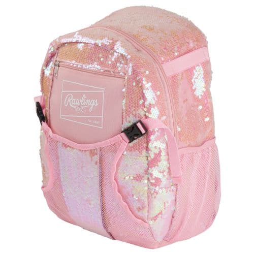 Youthful fun crackle or sequin cosmetic Two (2) bat storage locations Large main compartment for all gameday storage Front valuables and accessories pocket Added structure for durability