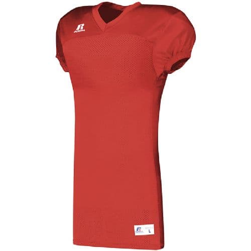 Russell Athletic Football Jersey W/Side Panels Strength and comfort come together in the Russell Athletic Solid Jersey With Side Inserts. 93 Cloth mesh is tough and breathable, and its skill cut 73 Cloth sleeves give this football jersey complete pad coverage. 100% nylon (colors), 100% polyester (white) tricot mesh. Reinforced 73 cloth yoke for added durability in contact area. Skill cut 73 cloth sleeves for complete pad coverage. 62 cloth side and under sleeve insert for tailored fit. Outside locker label. V-neck collar. Set-in sleeves.