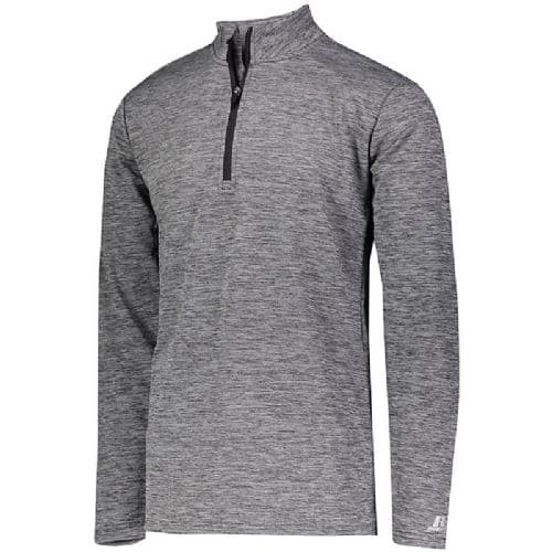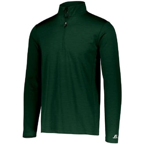 Russell Athletic Men's Dri-Power Lightweight 1/4 Zip Pullover Bring comfort to your workout with the Russell Athletic® Dri-Power Lightweight ¼ Zip Pullover. The 100% polyester, heathered construction features moisture-wicking technology to keep you dry and light, odor protection to keep you fresh, while stretch fabric provides a greater range of motion. This ¼ zip will keep you feeling comfortable and looking stylish. 100% polyester 2-tone interlock. Dri-Power® Moisture Wicking Technology. Odor protection. 4-Way stretch technology. Tagless label. "R RUSSELL" on left sleeve end. Quarter zip pullover style with zipper garage. Set-in sleeves. Open bottom.