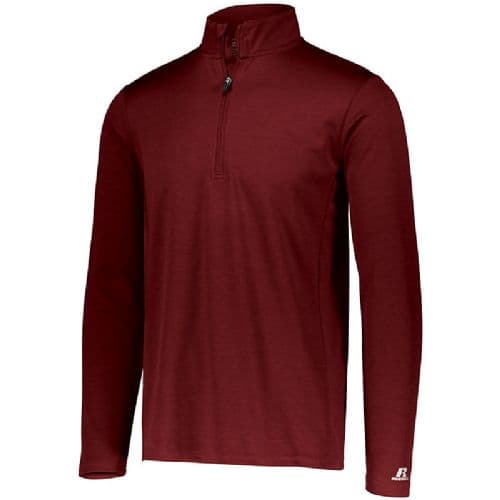 Russell Athletic Men's Dri-Power Lightweight 1/4 Zip Pullover Bring comfort to your workout with the Russell Athletic® Dri-Power Lightweight ¼ Zip Pullover. The 100% polyester, heathered construction features moisture-wicking technology to keep you dry and light, odor protection to keep you fresh, while stretch fabric provides a greater range of motion. This ¼ zip will keep you feeling comfortable and looking stylish. 100% polyester 2-tone interlock. Dri-Power® Moisture Wicking Technology. Odor protection. 4-Way stretch technology. Tagless label. "R RUSSELL" on left sleeve end. Quarter zip pullover style with zipper garage. Set-in sleeves. Open bottom.