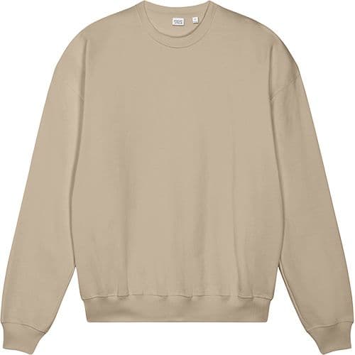 A boxy crewneck with a dry hand feel. The unique character of organic cotton provides a perfect place for a brand logo.