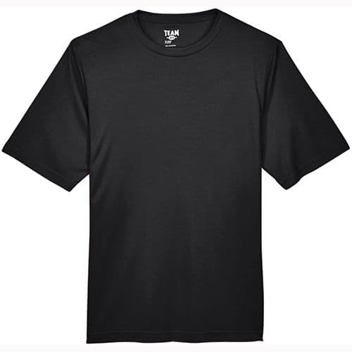 100% Polyester interlock with moisture-wicking and UV protection performance. Features an Athletic fit, heat-sealed label, and cationic dyes to ensure brightness and excellent fastness.
