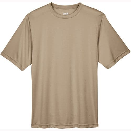 100% Polyester interlock with moisture-wicking and UV protection performance. Features an Athletic fit, heat-sealed label, and cationic dyes to ensure brightness and excellent fastness.