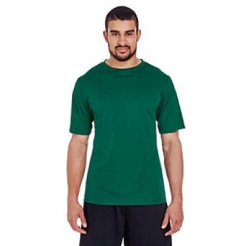 100% Polyester interlock with moisture-wicking and UV protection performance. Features an Athletic fit, heat-sealed label, and cationic dyes to ensure brightness and excellent fastness.