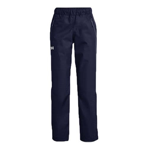 UA Women's Lined Rain Pant UA Storm technology repels water without sacrificing breathability. 2-Layer outer fabric with fully taped seams is 100% waterproof and windproof. interior woven lining for added comfort and warmth. Encased elastic waistband with internal drawcord adjust. Secure, zip hand pockets. Leg zips with snap closure for easy on/off, even over cleats. 100% Polyester.